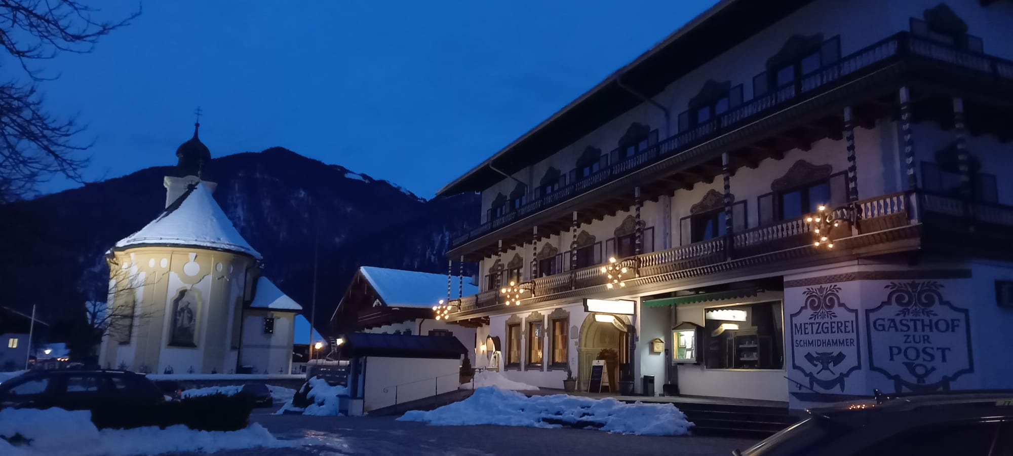 Am Fuße des Geigelsteins, im oberen Achental, finden Sie unseren Landgasthof Zur Post, in dem idyllischen Bergsteigerdorf Schleching. Bei uns können Sie die noch unverfälschte Natur der Chiemgauer Alpen genießen und sich in malerischer Natur Zuhause fühlen. Wir bieten dafür 29 Doppelzimmer, alle großzügig geschnitten und im Landhausstil, mit eigenem Parkplatz. All unsere Zimmer sind Doppelzimmer teilweise mit Bergblick, wobei 15 der Komfort Zimmer als 3-Bettzimmer genutzt werden können. Unser Haus besteht aus 3 Stockwerken, wobei der dritte Stock nur über Treppen erreichbar ist. Hunde sind bei uns in bestimmten Komfort Zimmern, nach Ankündigung und gegen eine Gebühr von 15€ die Nacht, herzlich willkommen. Kinderermäßigung erhalten Sie auf Anfrage und Babybetten, als auch Parkplätze stehen frei zur Verfügung. Ihr Zimmer steht Ihnen am Anreisetag ab 15 Uhr und am Abreisetag bis 10 Uhr zur Verfügung.